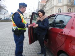 A rendőrök nőnap alkalmából ajándékkal köszöntötték a szabályosan közlekedő járművezető hölgyeket.