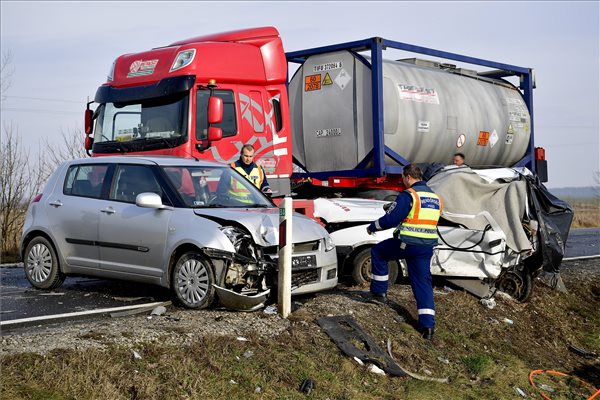 A kamionban és az egyik autóban csak a vezetők utaztak, míg a másik autóban hárman ültek. Közülük ketten meghaltak, a harmadik utast újraélesztik a mentők.