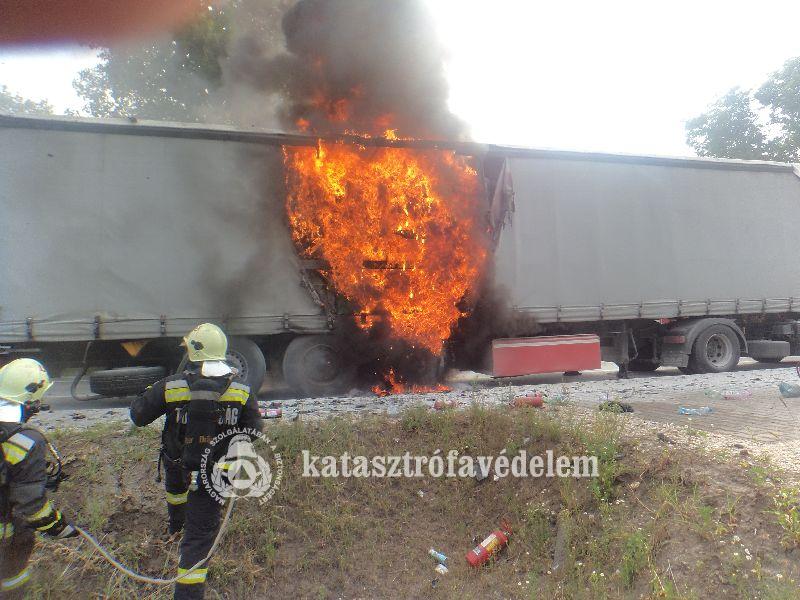 Nikecellt szállító kamion egyik kereke gyulladt ki szerda délelőtt Debrecen külterületén a 47-es főúton. A tűz átterjedt a rakományra is, melyet a debreceni hivatásos tűzoltók két vízsugárral oltottak el.