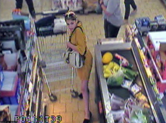 A rendelkezésre álló adatok szerint, a képen látható ismeretlen nő megalapozottan gyanúsítható azzal, hogy 2019. július 11-én, egy győri üzletben ellopta egy vásárló őrizetlenül hagyott táskáját. A tolvajról a bolt biztonsági kamerája felvételt készített.