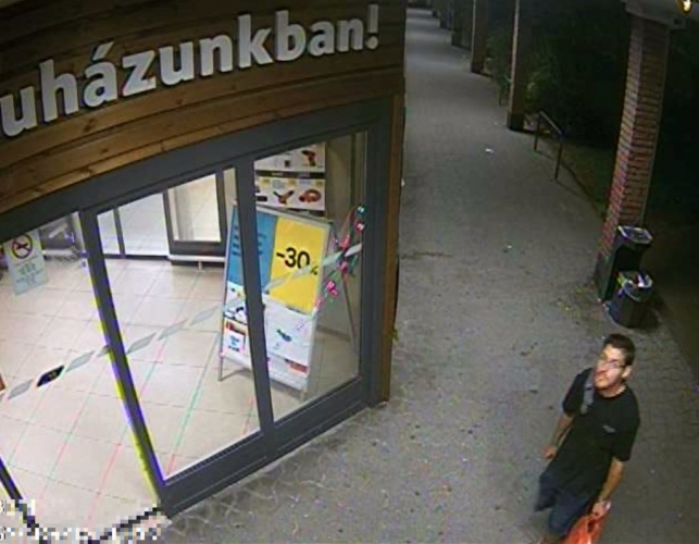 A rendelkezésre álló adatok szerint 2019. szeptember 7-én 1 óra 10 perckor Győrben, egy Szigethy Attila úti szupermarket bejárati ajtajának üvegét egy betondarabbal bedobta a képen látható ismeretlen férfi.