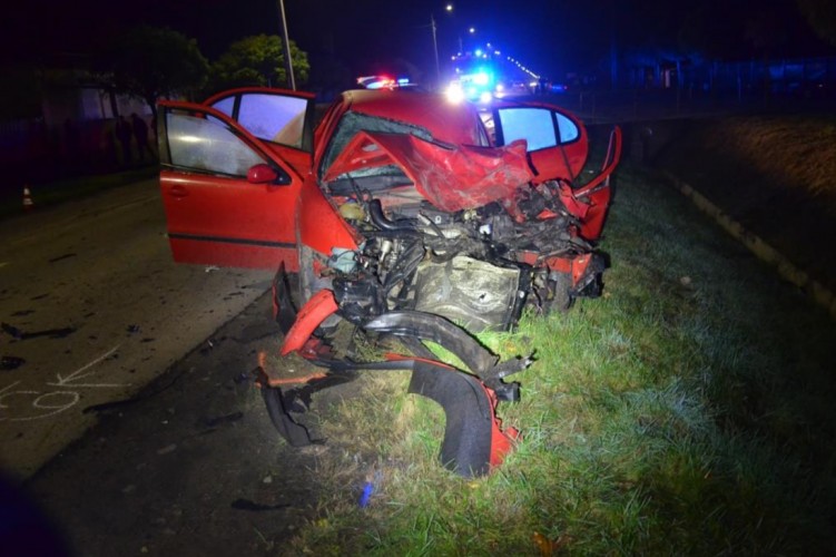 A balesetben a személyautó sofőrje és egyik utasa súlyos, míg a velük utazó másik férfi könnyű sérülést szenvedett.
