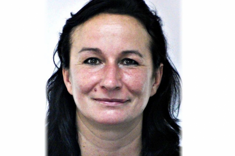 Pintérné Góg Viktória vékony testalkatú, hosszú, fekete hajú nő.