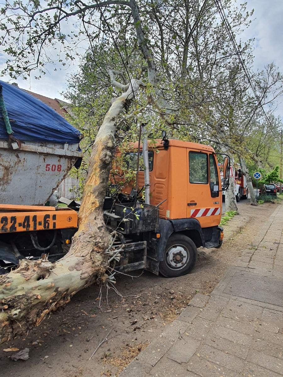 Délelőtt Debrecenben, a Luther utcában egy konténerszállító egy fának ütközött, a fa a járműre borult. A debreceni hivatásos tűzoltók vonultak, majd a fát motoros láncfűrésszel eltávolították.