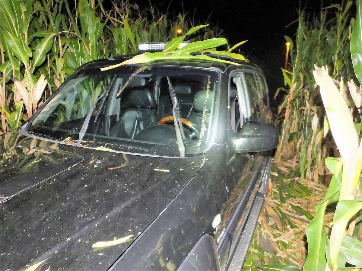 Debrecenbe probléma nélkül bevezetett, a dohányboltba is fennakadás nélkül megvette a cigarettát, azonban a visszaúton egy kanyart túl gyorsan akart bevenni az autóval, ezért lesodródott az útról és egy kukoricásban kötött ki. A gyanúsított ijedtében nem csak a kocsit hagyta hátra, hanem a pénztárcáját is benne felejtette.