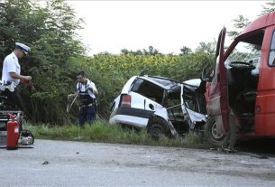 Egy autó szalagkorlátnak ütközött Debrecenben, a Határ út végében. A debreceni hivatásos tűzoltók az autót a szalagkorlátról leemelték.