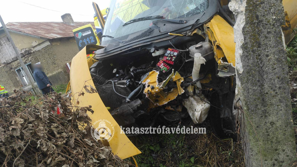 Villanyoszlopnak ütközött egy kisbusz hétfőn a nyírpilisi Fő utcában, s kidöntötte azt.