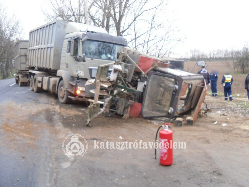 Mezőgazdasági vontató és tehergépjármű ütközött szerdán a 49-es számú főúton Őr és Jármi között.