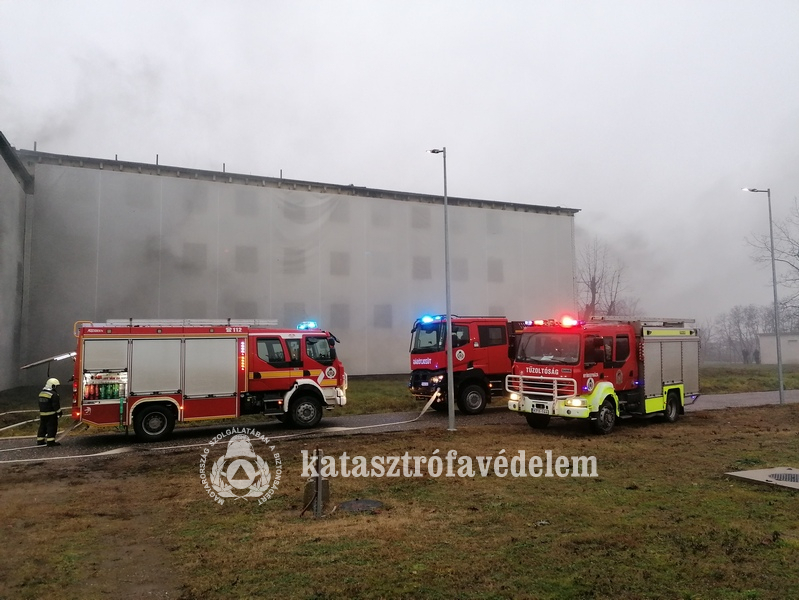 Üres, felújítás alatt álló épület alagsorában égett gumiabroncs Nyíregyházán, a Tiszavasvári úton hétfőn.
