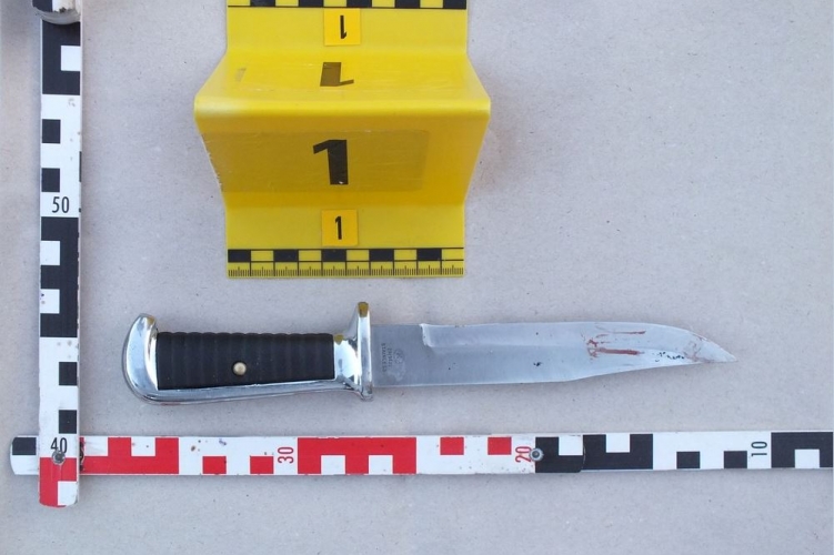 Az elkövető és a sértett dulakodni kezdett, melynek során a sértett lefeszítette az elkövető tőrt tartó kezét így a vágóeszköz a támadó combját sértette meg, aki erre azt elengedte. A földre került tőrt a sértett rúgta arrébb.