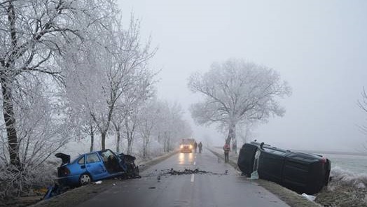 A fenti helyen és időpontban igen kedvezőtlen időjárási viszonyok uralkodtak, köd volt, az aszfalt jeges volt, azonban a közvilágítás nélküli útszakaszon gyér volt a forgalom.