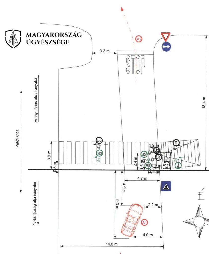 A vádlott ezután a Petőfi utcában haladt, majd rákanyarodott az Arany János utcára, azonban a kereszteződésben nem adott elsőbbséget két, a védett úton közlekedő autósnak, akik az ütközést csak vészfékezéssel, illetőleg megállással tudták elhárítani a forgalmas útszakaszon.