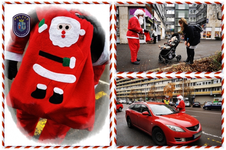 A közlekedők a megyeszékhelyi belvárosban találkozhattak a rendőrségi Télapóval, aki járőrtársával teljesített szolgálatot.