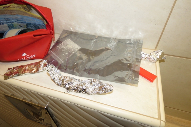 A rendőrségre 2022. február 15-én 11 óra 24 perckor érkezett a bejelentés arról, hogy Győrben, az egyik hotelben megszállt vendég szobájából összefüggéstelen kiabálás hallatszik. Az alkalmazottak kopogtatására a férfi nem válaszolt, illetve a később odaérkező járőrök kérdésére sem adott életjelet magáról. Az egyenruhások miután az ajtót kinyitották, a fürdőszoba zuhanyzójában találtak rá a vendégre, mellette egy üres, illetve egy kábítószergyanús anyagmaradványt tartalmazó alufólia volt. Kicsit odébb egy tartályon kilenc simítózáras tasakban, por állagú és növényi származékot tartalmazó droggyanús anyagokat, illetve digitális mérleget is találtak. A 29 éves férfi zavartan viselkedett, láthatóan bódult állapotban volt, és az intézkedőknek elismerte, hogy nem sokkal korábban fogyasztott kábítószert, amit a vele szemben alkalmazott gyorsteszt is igazolt.