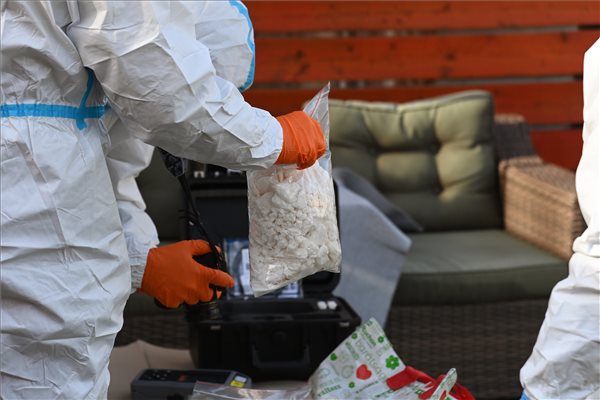 Kezdőkép: Kábítószergyanús anyagot vizsgálnak rendőrök a Pest Vármegyei Rendőr-főkapitányság és a Készenléti Rendőrség közös rajtaütésén a főváros XX. kerületében 2023. október 17-én. Több mint tíz kilogrammnyi új pszichoaktív anyagot, “kristályt” foglalt le a rendőrség Pest, Nógrád és Heves vármegyében – közölték 2023. október 24-én a három vármegyei rendőr-főkapitányság és az Országos Rendőr-főkapitányság (ORFK) közös sajtótájékoztatóján. A hatóságok több, kábítószerrel kereskedő bűnbandát számoltak fel, és az ügyekben összesen 17 embert gyanúsítottak meg, ellenük új pszichoaktív anyaggal visszaélés miatt indult eljárás. A kábítószer-terjesztők többnyire családi alapon szerveződtek és így kereskedtek a droggal. MTI/Mihádák Zoltán