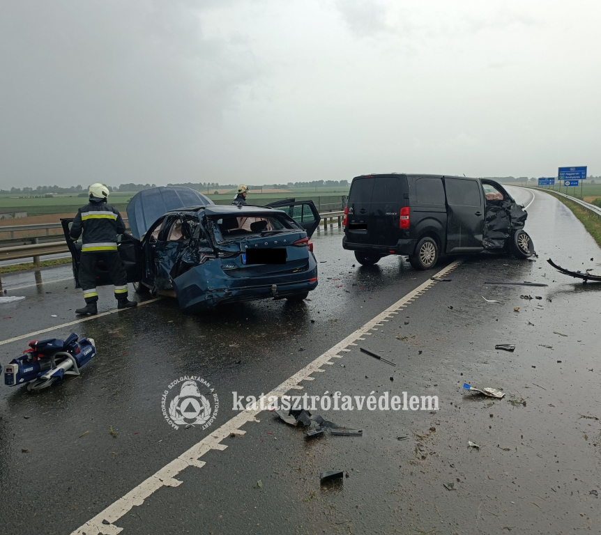 Szalagkorlátnak csapódott az a kisbusz, amibe egy személygépkocsi is belehajtott Debrecen térségében, az M35-ös autópálya 44-es kilométerszelvényénél, Mikepércs felé.
