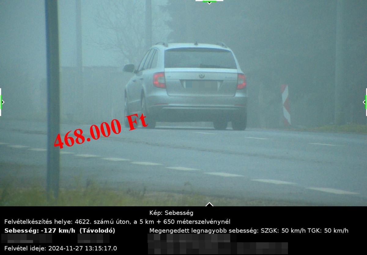 Az elmúlt héten a megengedett sebességhatárokat regisztráltan 1208-an lépték át. A szabálytalankodóknak legalább 50.000 forint közigazgatási bírságot kell fizetniük, a kiszabható bírság összegének maximuma pedig 468.000 forint.