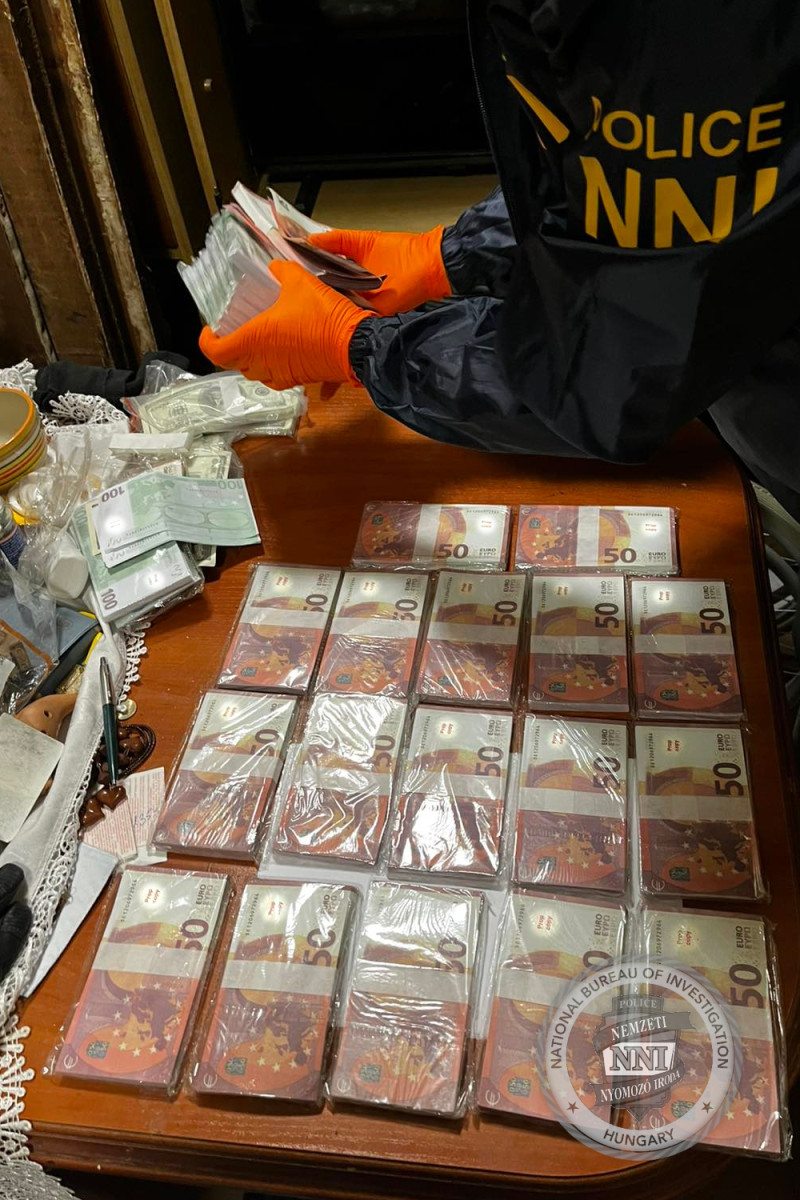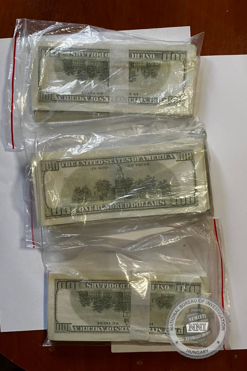 A lakásán a rendőrök 3207 darab hamis bankjegyet találtak: „prop copy” feliratú és azonos sorszámú 100 eurósból 936 darabot, míg ugyanilyen 50 eurósból 1944-et, illetve ezen felül 327 darab, azonos sorszámmal ellátott, hamisgyanús 100 dollárost. A bankjegyek egyikén sem voltak biztonsági elemek, és tapintásra is eltértek az eredeti valutáktól.
