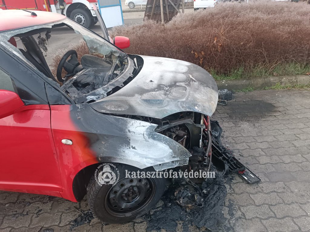 Egy személyautó motortere égett Debrecenben, a Szoboszlói úton még csütörtökön. A debreceni hivatásos tűzoltók egy vízsugárral és kéziszerszámokkal oltották el a tüzet.