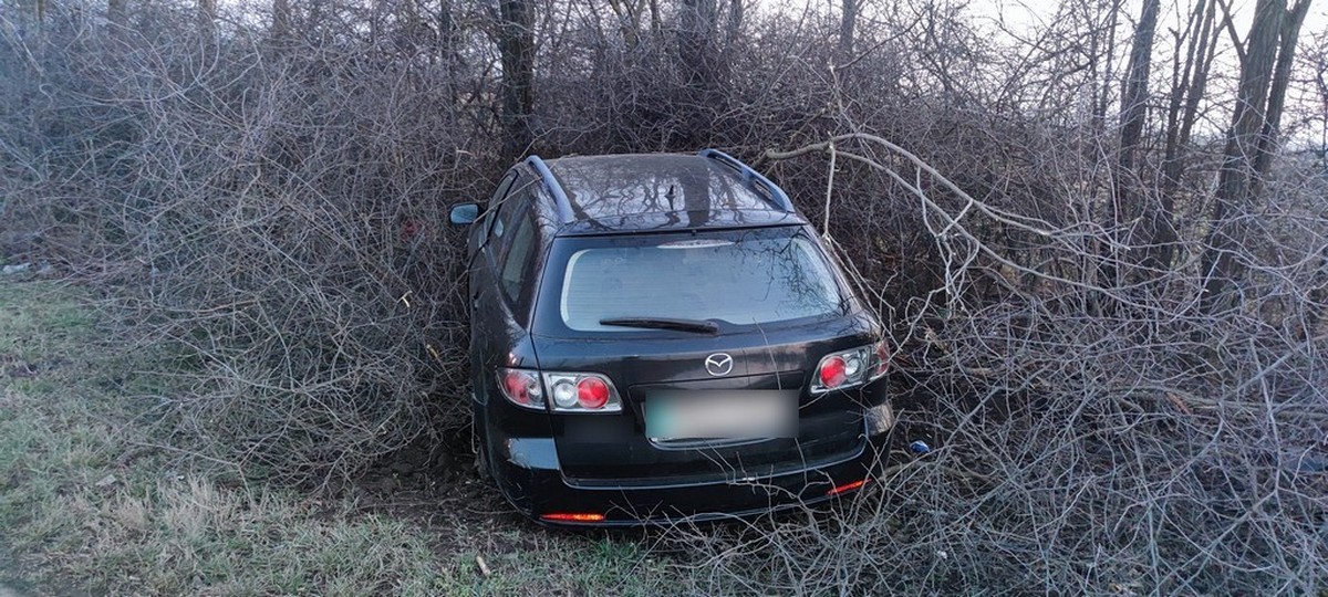 Az önjelölt sofőr azonban nem jutott messzire, mivel Hajdúszovát után letért az útról, és egy bokros területre csúszott.