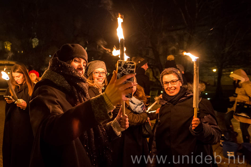 Fáklyás felvonulással búcsúztak egyetemi éveiktől a Debreceni Egyetem Állam- és Jogtudományi Kar végzős hallgatói csütörtökön. A tradicionális eseményen a kar vezetői és oktatói együtt vonultak a diákokkal.