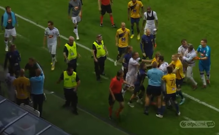Szőts Gergely játékvezető ezt követően le is fújta a találkozót, az indulatok pedig elszabadultak: Hadzic szólalkozott össze a felcsúti kispadon helyet foglalókkal, majd több csapattársa is csatlakozott hozzá – volt, aki nyugtatni akarta -, a csetepatéban egy pillanatra még Benczés Miklós, a Puskás Akadémia vezetőedzője is a földre került.
