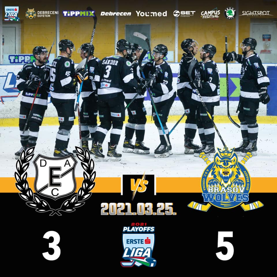 DEAC-Corona Brasov Wolves (romániai) 3-5 (1-1, 2-0, 0-4)