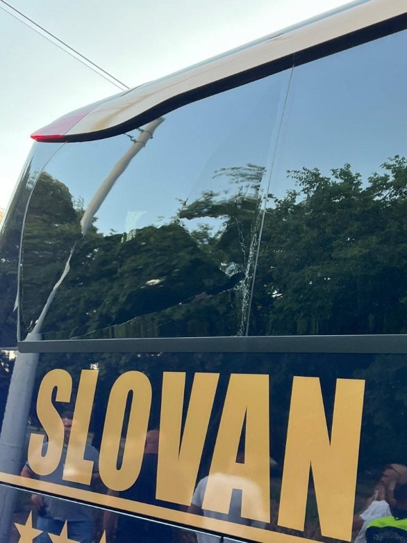 A Nemzeti Sport értesülése szerint a pozsonyi együttest szállító buszt kedden este, az edzés után három rendőrautó kísérte a szálláshely felé, amikor a Népligetnél, a trolibuszmegállónál kővel megdobták a járművet. A busz ablaka kétrétegű, az egyik masszív, golyóálló anyagból készült, így csak a külső réteg roncsolódott, a Slovan labdarúgói, edzői közül senki sem sérült meg. A rendőrség azonnal keresni kezdte az elkövetőt.
