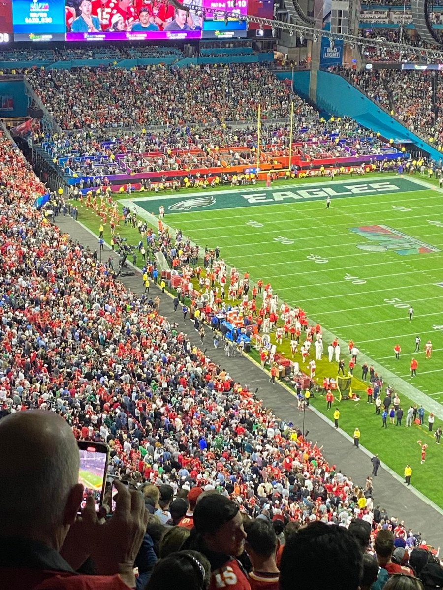 A Chiefs a nagyszünet után – a félidőben a kilencszeres Grammy-díjas Rihanna lépett fel, aki öt év után állt újra színpadra – a kissé bicegő Mahomesszal első támadásából TD-t szerzett, majd a védelem mezőnygólon tartotta az Eaglest.