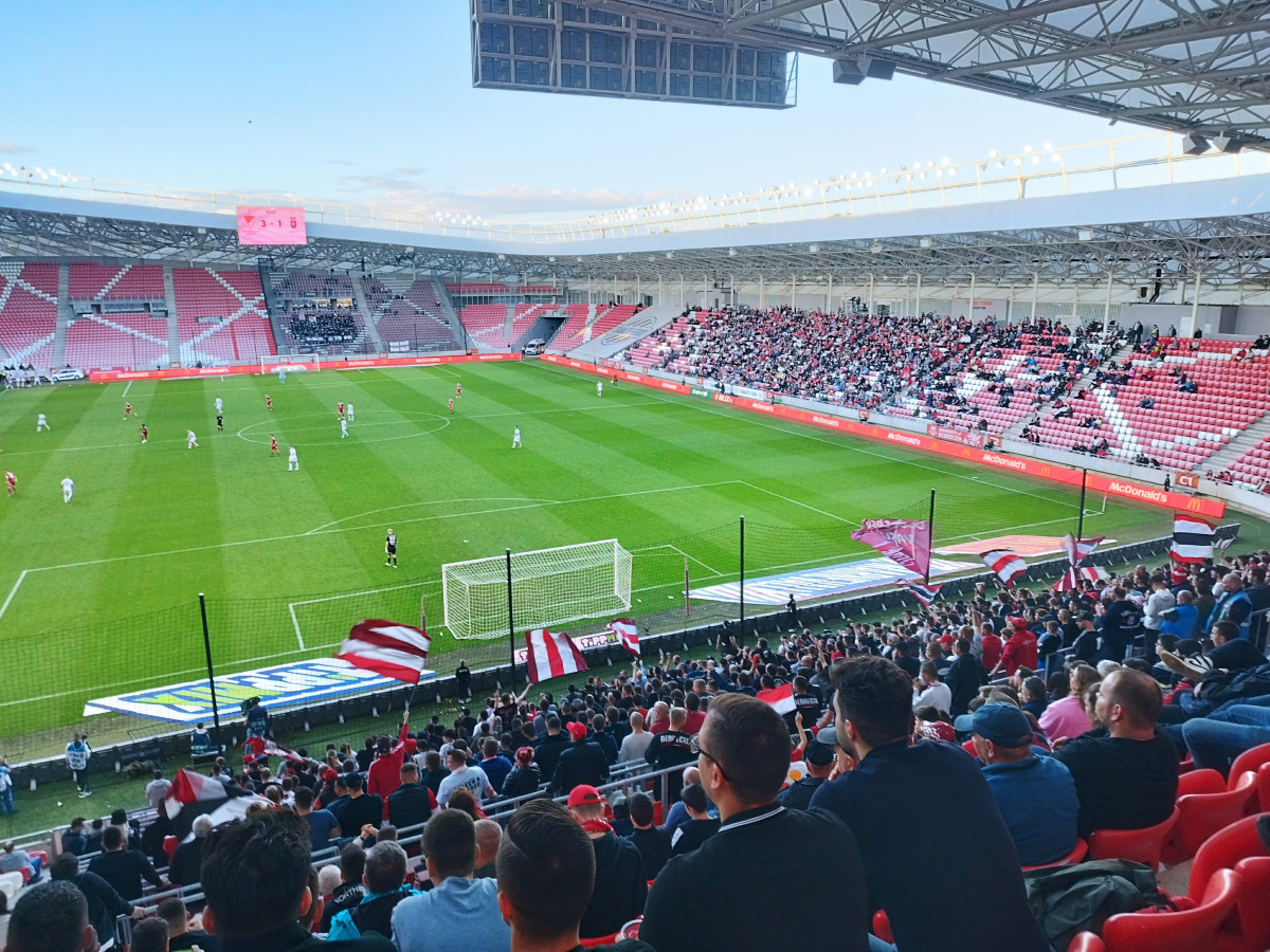 Ha már hatpontosnak aposztrofáltam ezt a kilencven percet, akkor a parázs rangadó jelzőt is nyugodtan rá lehetett aggatni a vasárnap délutáni meccsre, mivel a két tábor viszonya közel sem rózsás, amit a tavaszi összecsapásunk alkalmával is bizonyítottak a lelátón a felek. Az időjárásra sem lehetett panasz, meglepően jó idő volt annak ellenére, hogy lassan már a novembert tapossuk. Így ennek is szólt a közel hatezer fős nézőszám, de ha pontosak akarunk lenni, akkor 5870 fő szerepelt az eredményjelzőn a mérkőzés közben