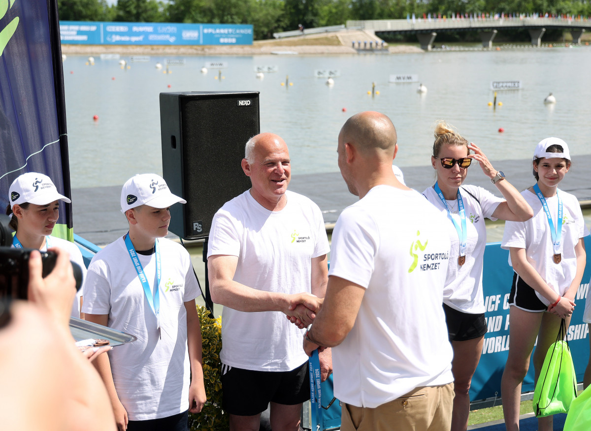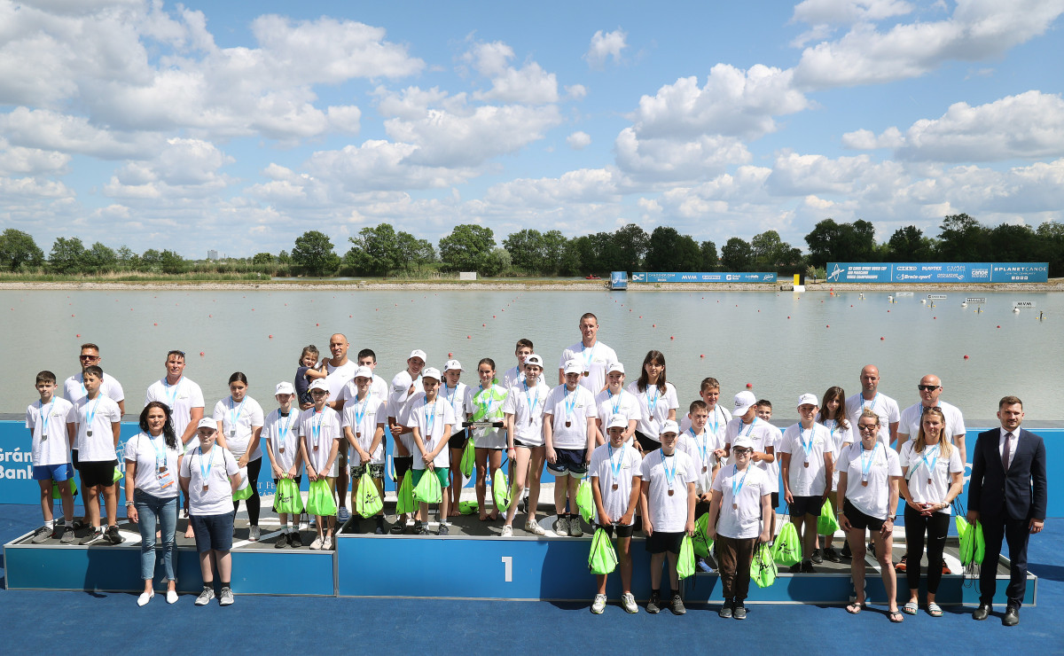A Nemzeti Sportügynökség támogatásával, a Sportoló Nemzet program keretein belül több olimpiai és világbajnok is vízre szállt pénteken egy túrakenu betétfutamban a szegedi kajak-kenu világkupán. A gyerekek és a bajnokok társaságában ott volt Schmidt Ádám sportért felelős államtitkár és Schmidt Gábor helyettes államtitkár, a Magyar Kajak-Kenu Szövetség (MKKSZ) elnöke is.
