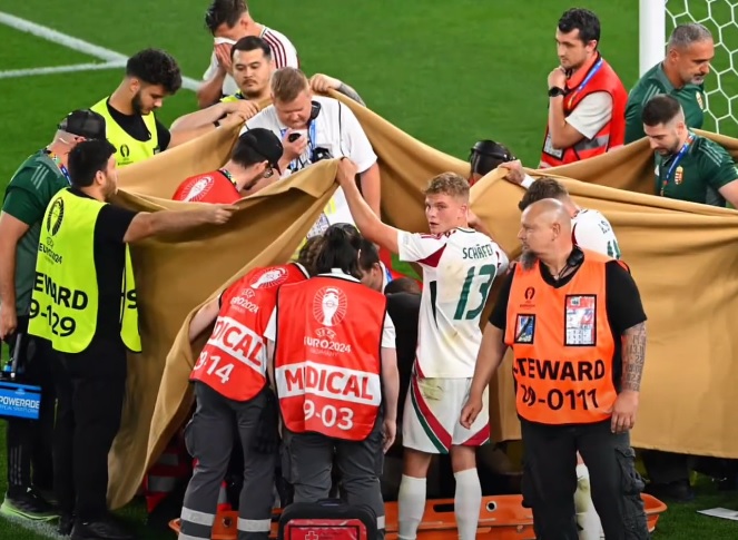 A magyar labdarúgó-válogatott középcsatárának, Varga Barnabásnak eltört az arccsontja, ezért valószínűleg órákon belül megműtik, így számára véget ért az Európa-bajnokság.
