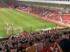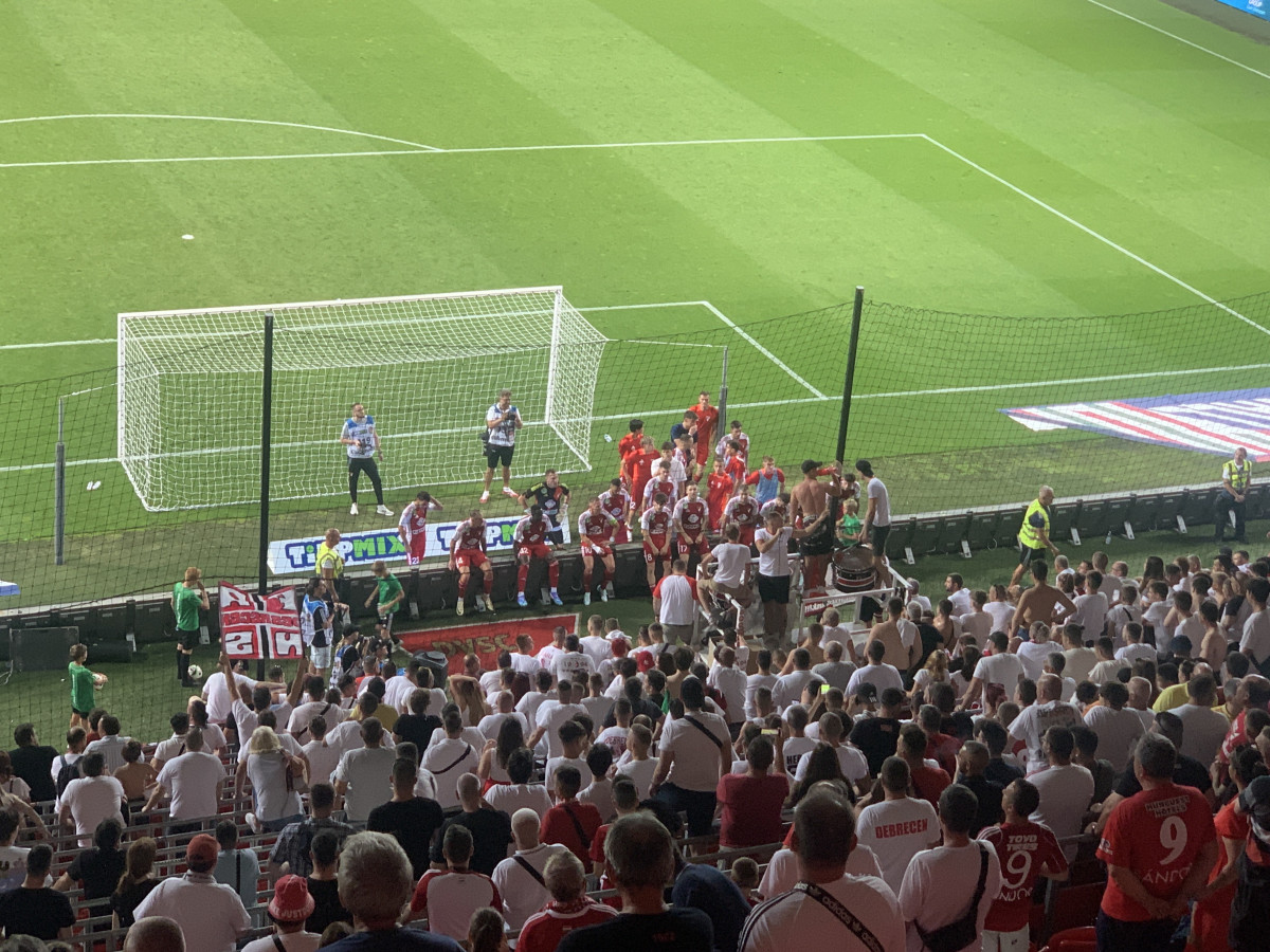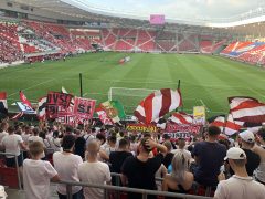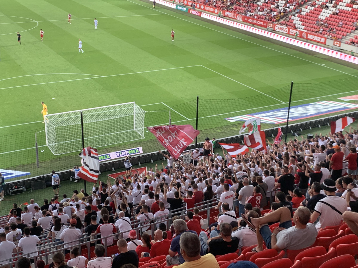 Kezdésként a Víztoronykert felé vettük az irányt, és a Match Day Fesztivál keretében a kifejezetten szurkolóbarát 590 forintos csapolt sörrel alapoztunk, amiből jó párat elfogyasztottunk, és közben egyszer-egyszer ránk is tört a nosztalgia a korábbi meccseinkből táplálkozva. Szó esett az első kupagyőztes csapatunkról és a dicsőséges aranykorról is, amiről mindig jó beszélni nekünk, lokistáknak. A hangulat fokozásául a helyszínen egy lemezlovas is zenélt, és a korábbi meccseink legjobb pillanatait egy óriás kivetítőn is lejátszották.