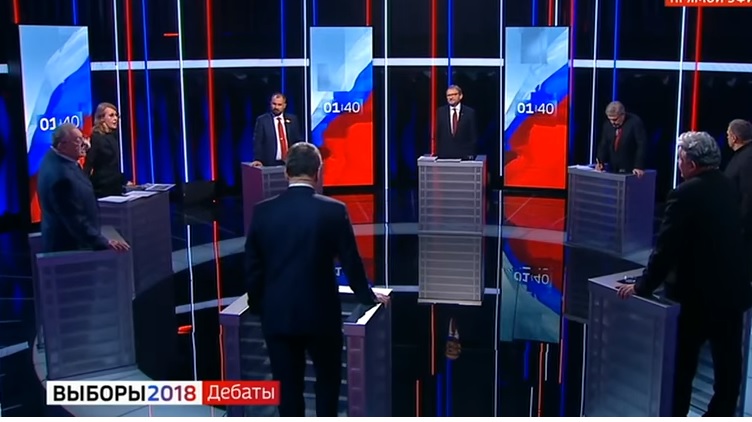 A vitába keveredett feleken kívül jelen volt Pavel Grugyinyin, az Oroszországi Föderáció Kommunista Pártja, Makszim Szurajkin, az Oroszország Kommunistái, Borisz Tyitov, a Növekedés Pártja és Grigorij Javlinszkij, a Jabloko párt elnökjelöltje is. A függetlenként induló hivatalban lévő elnök, a március 18-i választás favoritja, Vlagyimir Putyin nem volt jelen a stúdióban.