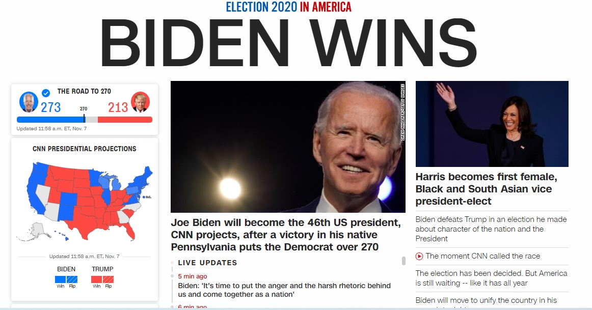 Joe Biden nyerte a maratoni hosszúságú szavazatszámlálási procedúra után az amerika elnökválasztást. A hírt vezető hírügynökségek – így a CNN is – közölték.