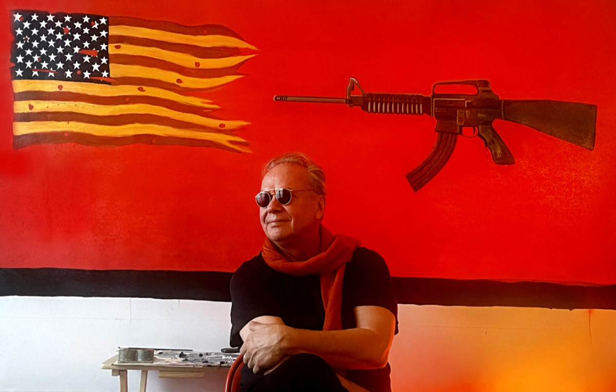 Robert Mack Los Angeles-i művész legújabb művében az elmúlt napok tragikus kaliforniai lövöldözéseire és az Amerika-szerte egyre gyakoribb fegyveres támadásokra kívánja felhívni a figyelmet.