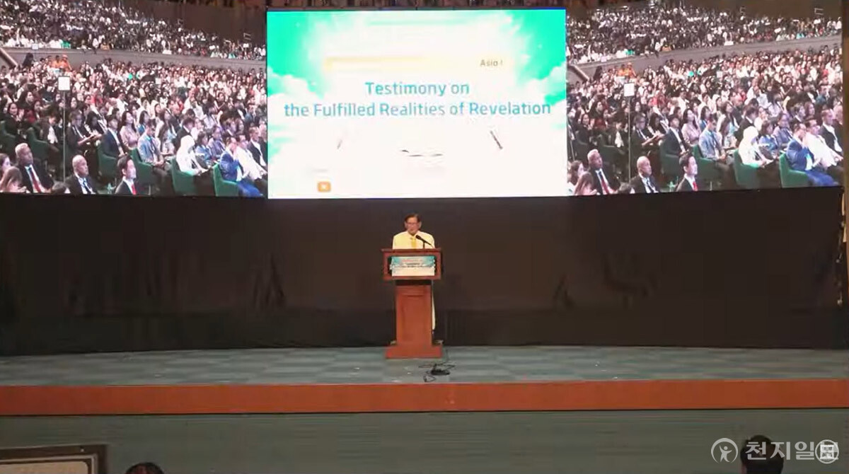 “Ennek a személynek (Lee Man-hee elnöknek) az a küldetése, hogy közvetítse a Jelenések könyve 1-22. fejezetének eseményeiről szóló beszámolókat és hallottakat. Azért vagyok itt, hogy megosszam Önökkel azt, amit láttam és hallottam, amit megérintettem, és ami a valóságban létezik. Most nincs itt az ideje, hogy bármit is mondjanak, és egyszerűen csak egyetértsenek az “Ámen”-nel. Meg kell érteniük a valóság korszakát. Ez az a korszak, amikor az ígéretek beteljesedtek.”
