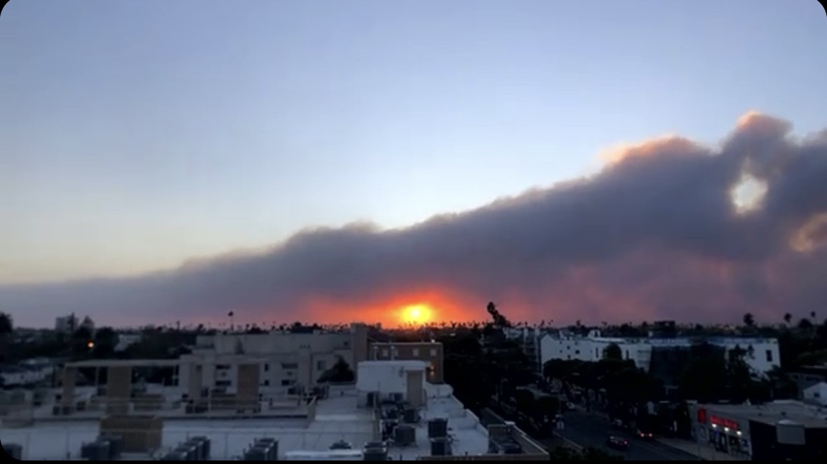 Los Angeles déli területén három tűzfészek alakult ki, ezek közül az egyik a sűrűn lakott és turisztikai központnak számító Santa Monica-val határos Pacific Palisades-on. A lángok elérték az óceán melletti fontos, közlekedési verőérnek számító autópályát is a Pacific High Ways-t és azt átlépve átterjedtek az állami strandokra is.