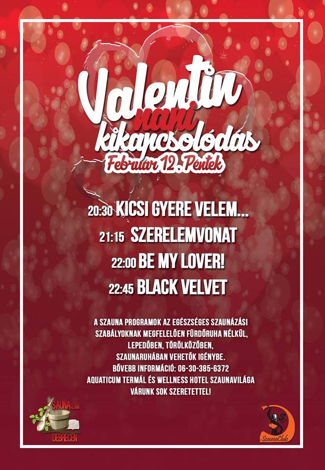 Valentin napi romantika az Aquaticum Szaunavilágban Wellness február 11, 2016Szabolcs SzilágyiSzóljon hozzá a Valentin napi romantika az Aquaticum Szaunavilágban bejegyzéshez Pénteken romantikázunk egy kicsit!