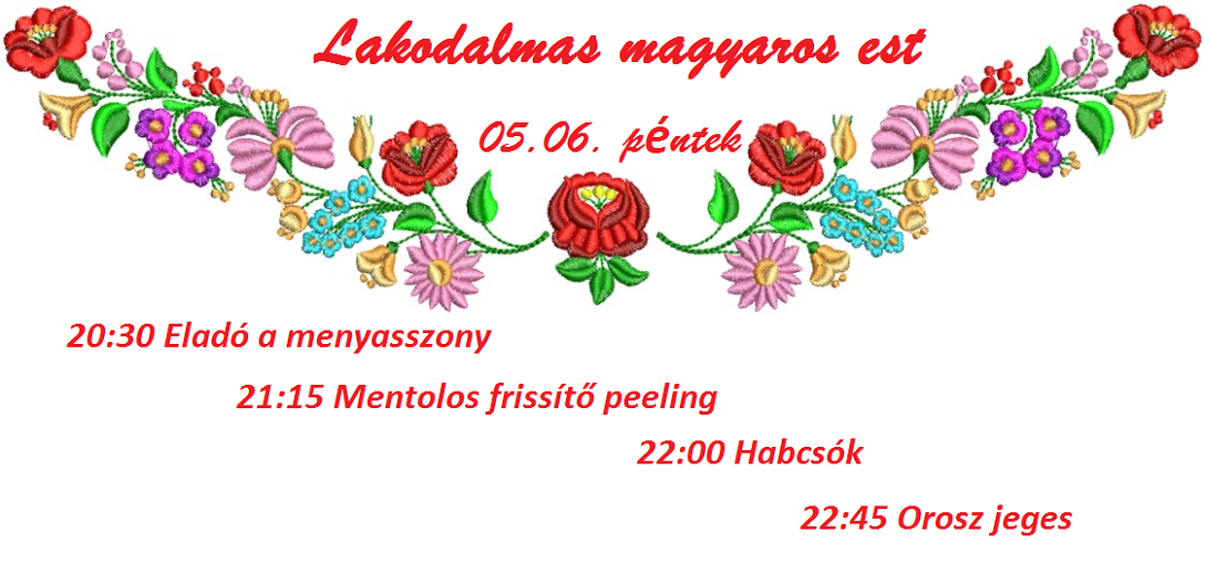 Múlt hét végén két nagyon kedves törzsvendég, Tündi és Lacus örök hűséget esküdtek egymásnak. Őket szeretnék köszönteni egy vidám hangulatú magyaros esttel.